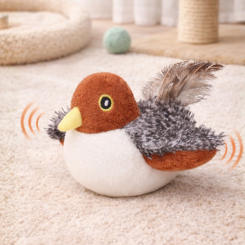 FlapFrenzy features a built-in motion sensor that activates the moment your cat touches it, triggering energetic wing flapping and realistic chirping sounds. The sparrow-inspired design taps directly into natural hunting instincts, encouraging chasing, pouncing, biting, and kicking for healthy physical activity. When play pauses, the toy automatically rests to conserve energy, reactivating instantly with the next interaction.