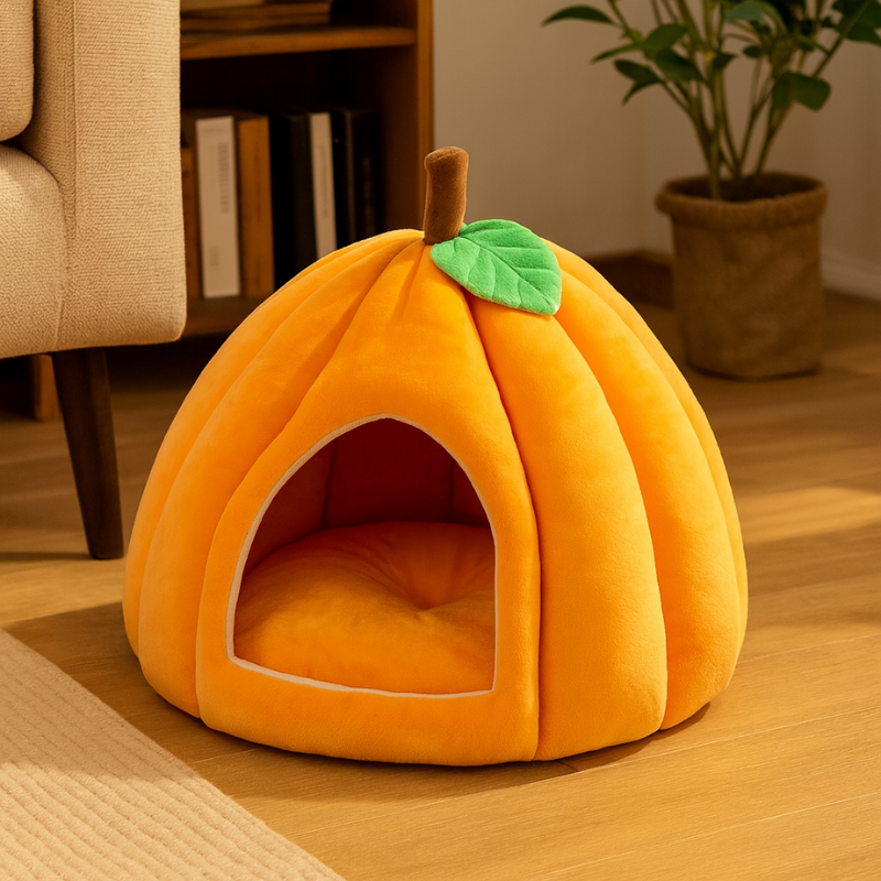 Cozy Pumpkin-Shaped Cat Cave for All-Season Snuggles
