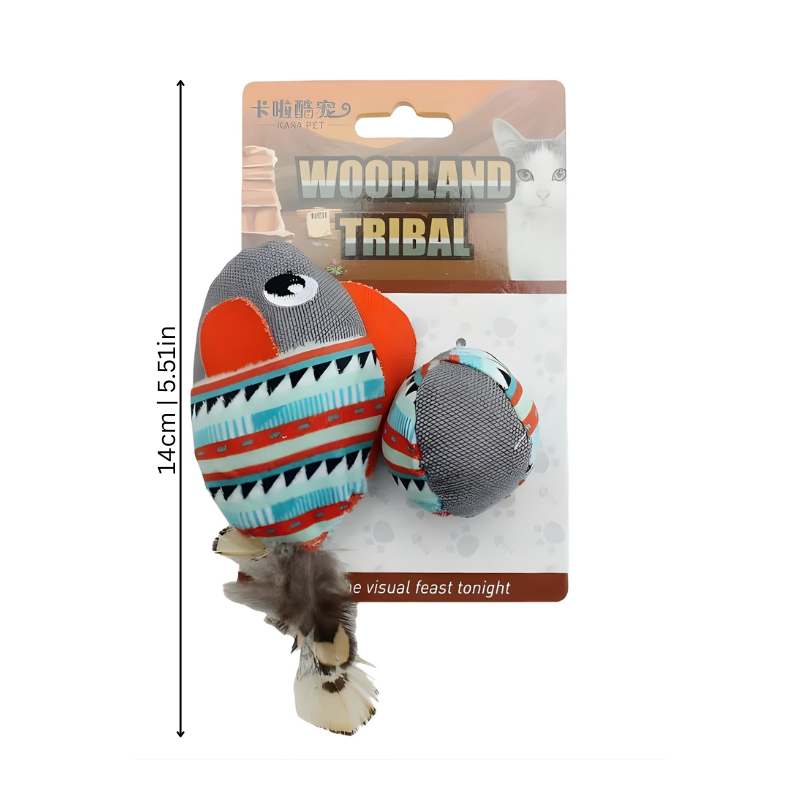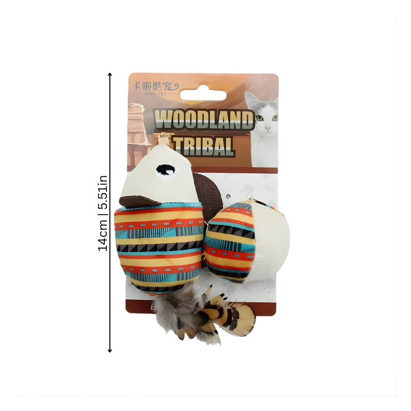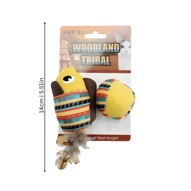 Really like that they’re soft and don’t make any annoying squeaky sounds. my senior cat plays gently and these don’t hurt his teeth or claws. love the tribal style too, super cute.