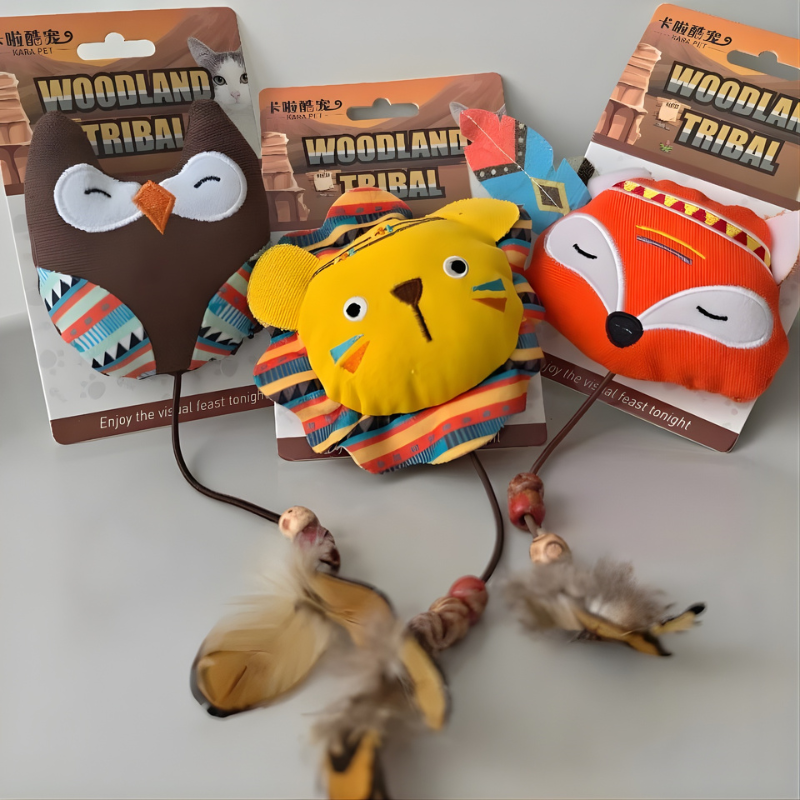 My cat’s obsessed with these, especially the one with the feathers. she drags it around like it’s her baby lol. the fabric feels durable and she hasn’t ripped it yet, which is rare tbh.
